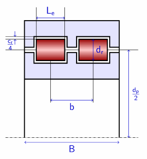 for single row bearing. Here, b is the axial distance between the roller centers and
