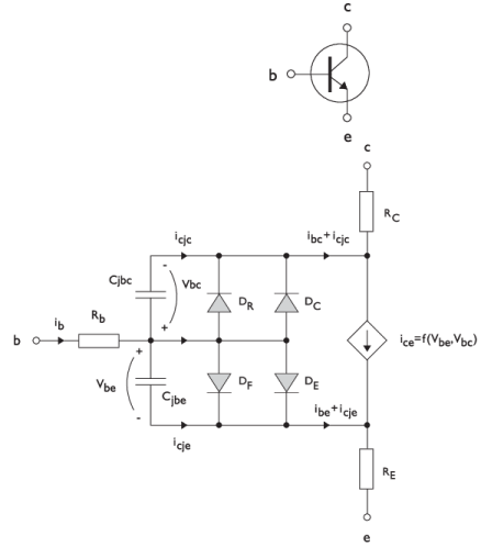 illustrates the equivalent circuit for the npn bipolar junction transistor.