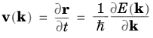 Equation 3-35. In the reduced zone scheme, electrons that pass out of the Brillouin zone immediately reappear unchanged (except for a relabeling of the k-vector) at the opposite face. Summing the drift velocity over all the states in the band produces exactly the same result in the presence of applied fields as without them, since the band structure remains unchanged and since all the states are still occupied (see