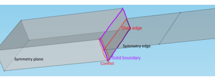 Conflict in the sketch, the displacements will be controlled both by the symmetry condition is Solid Mechanics, and implicitly through the coupling, by the symmetry condition in the Shell interface. Particularly if the geometry is curved, there is a risk that these constraints are not identical from a numerical point of view. In this case, excluding the conflicting edge from the selected boundary in the Solid Mechanics interface will make the behavior unique and fully predictable.