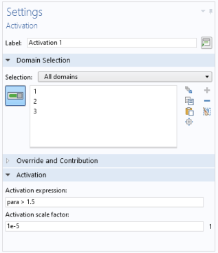 Activation subnode is added in a Solid Mechanics or Membrane interface, such a