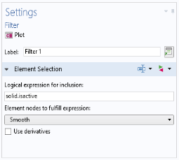 If you have performed an analysis in which only part of the material is active, it is useful to apply a Filter and only display the regions that actually are active; see