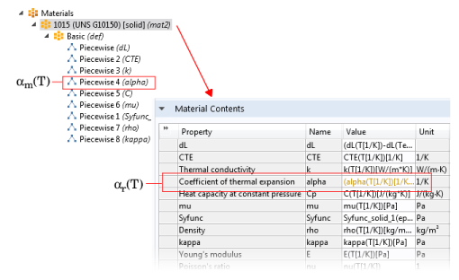 In most of the physics interfaces, you can enter tangent data directly by selecting Tangent coefficient of thermal expansion in the settings for Thermal Expansion. When using this option, a numerical integration of Equation 2-21 will be performed each time the thermal strain is used. This will have a negative impact on the performance, when compared to using a secant coefficient of thermal expansion.