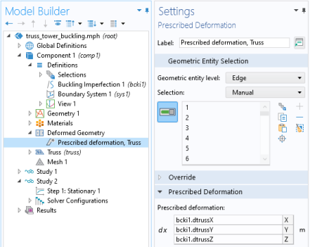 Buckling Analysis of a Truss Tower: Application Library path Structural_Mechanics_Module/Buckling_and_Wrinkling/truss_tower_buckling