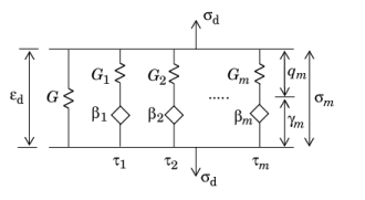 The stress in each element m is given by the sum of the stresses in the spring and dashpot arranged in parallel