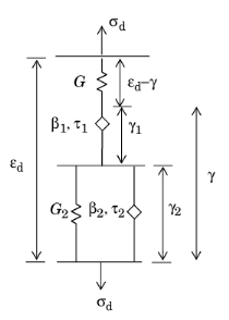 Thus, p = τβ/G, and the stress–strain relationship in the spring-spring-pot system reads