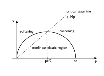 In the modified Cam-clay model, hardening is controlled by the consolidation pressure pc, which depends on the volumetric plastic strain