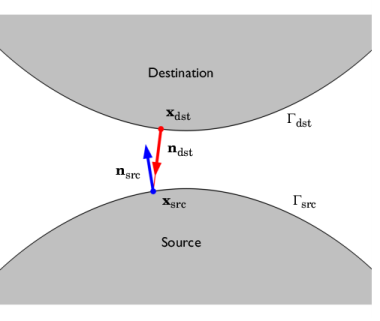doffset,d is the offset from the source and destination boundary, respectively. Each offset variable can vary along the geometry, and may also vary in time (or by the parameter value when using the continuation solver). The correction of the source side offset is necessary since the normal of