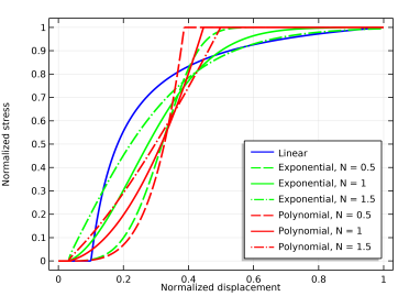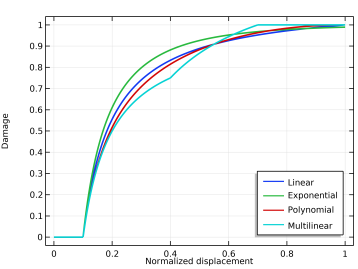 A similar damage evolution function is obtained with the Polynomial option. It gives a generalized version of the traction–separation law proposed in