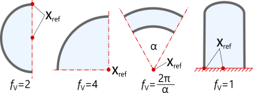 For half symmetry (one plane), Xref may be an arbitrary point on the symmetry plane. In case the model is 2D axisymmetric, Xref is the intersection of the symmetry plane with the axisymmetry axis (that is, Xref is located at R = 0).