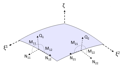 Figure 3-55 shows a doubly curved laminated shell with uniform total thickness,
